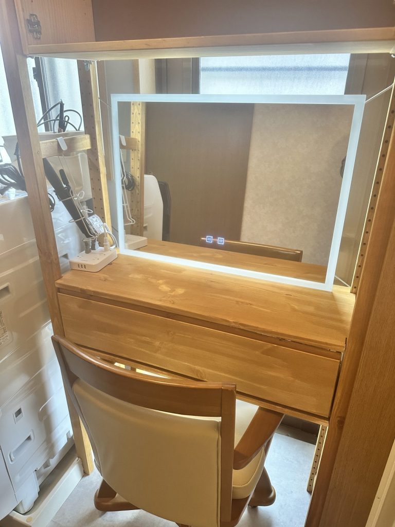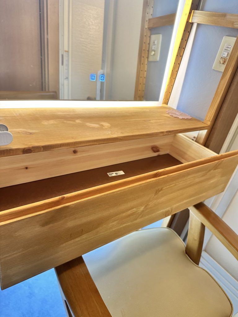 引き出しも取付して、化粧道具を隠せる