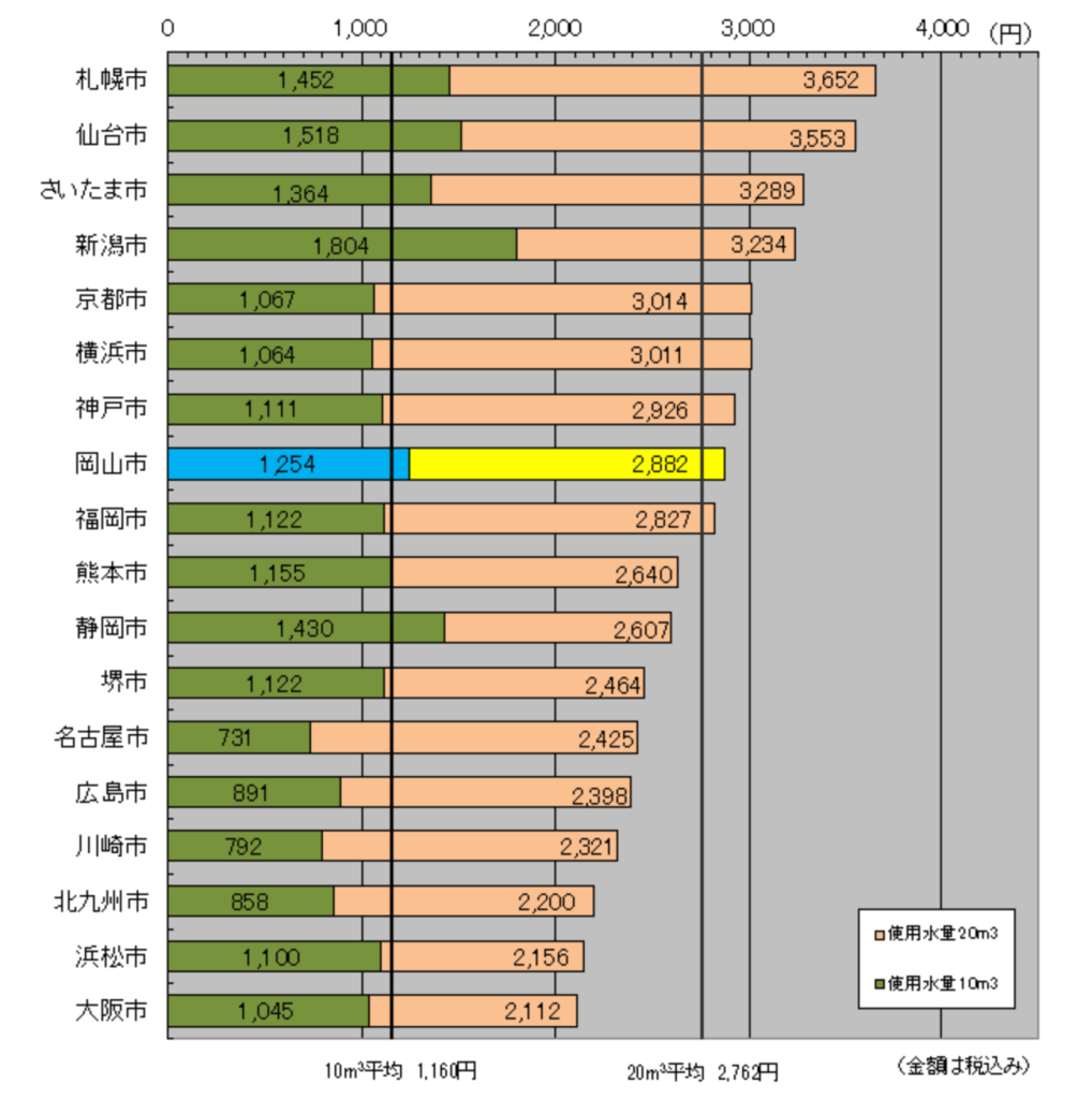 岡山市ってまだ水道料金って比較て安価だと思う。
